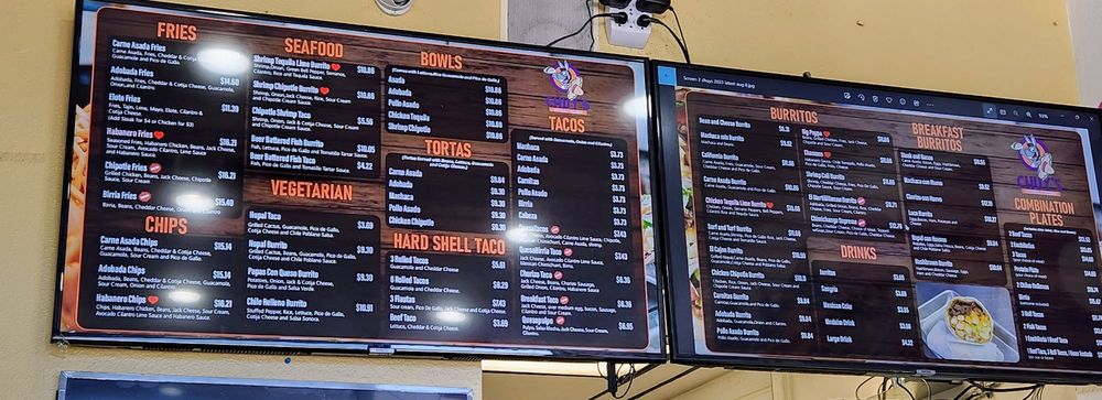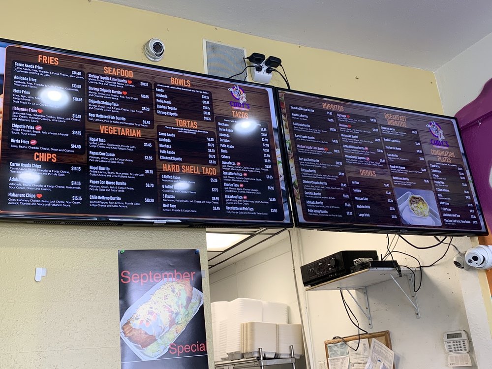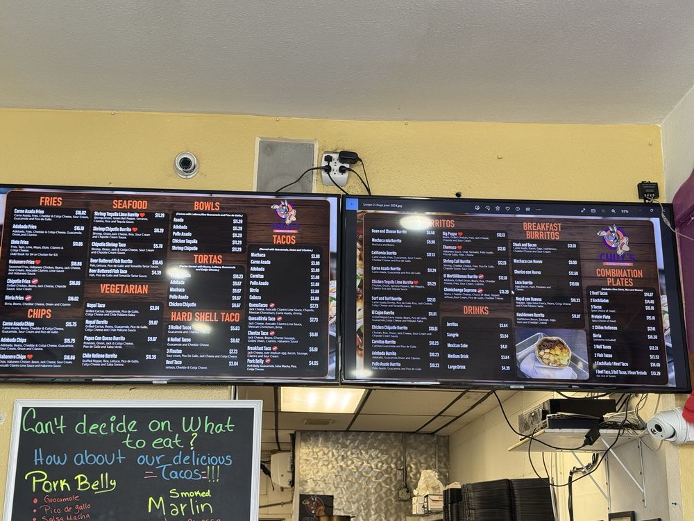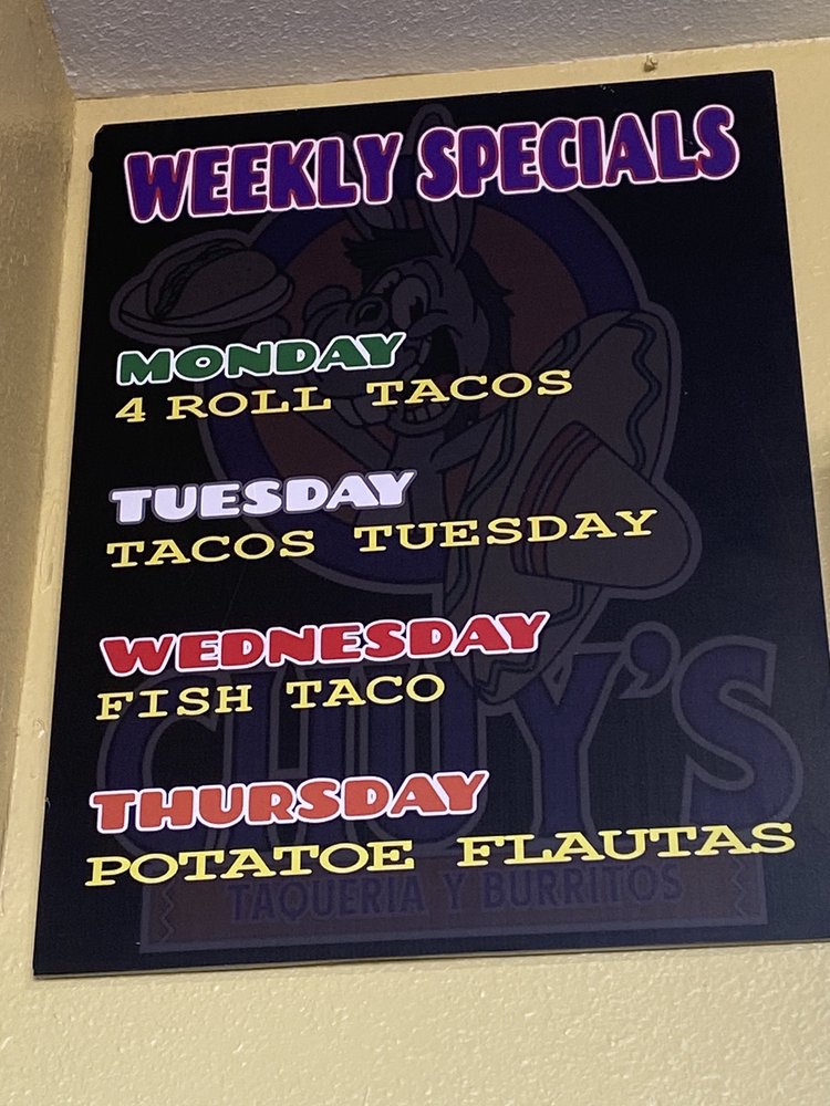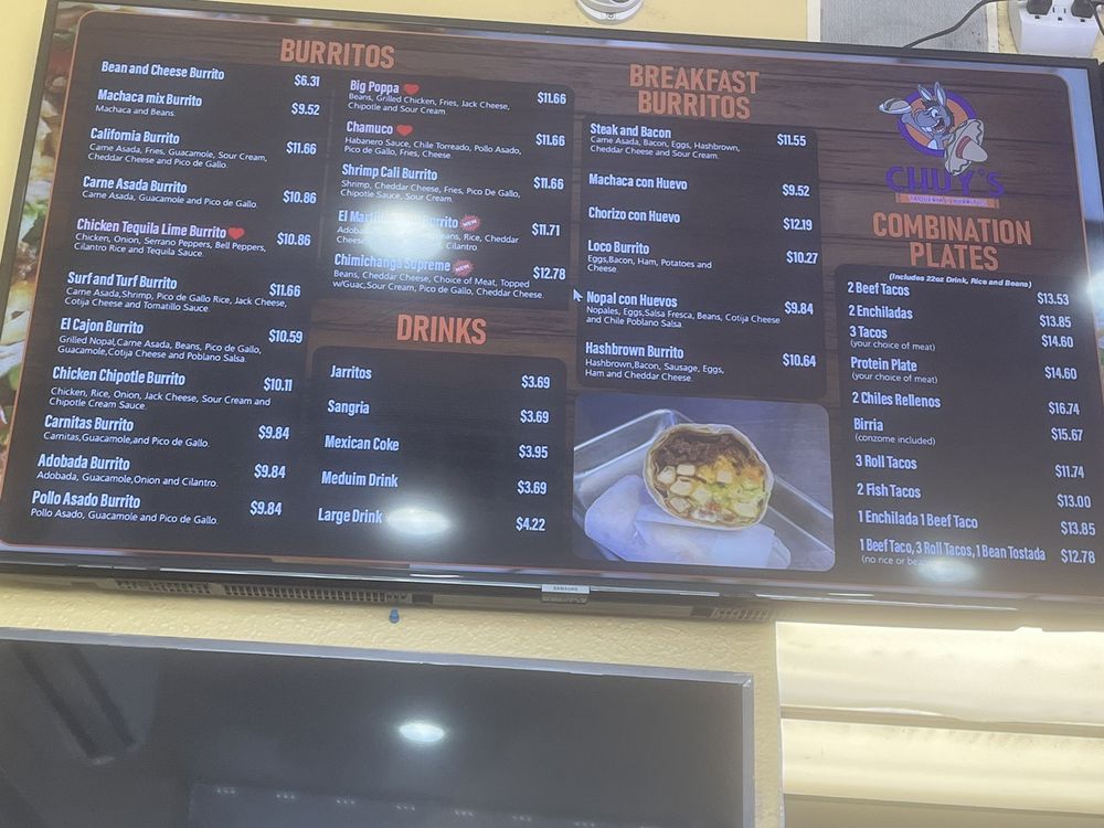 Chuy's Taqueria y Burritos in El Cajon, CA offers a vibrant menu of delicious tacos, breakfast burritos, chips plates, and fries plates. Their specialties include the Steak and Bacon Burrito, Adobada Chips Plates, and Carne Asada Fries Plate. With a range of vegan and vegetarian options, this casual and trendy spot caters to all palates. The welcoming staff and friendly service enhance the dining experience, as noted by satisfied customers. Noteworthy highlights include the flavorful chicken rolled tacos, green salsa, hot carrots, and Smoked Marlin & Al Pastor Chicken Tacos. The menu features street taco-sized portions filled with tasty ingredients. Reasonably priced and offering daily specials, Chuy's Taqueria y Burritos is a must-visit for taco lovers looking for a memorable dining experience.